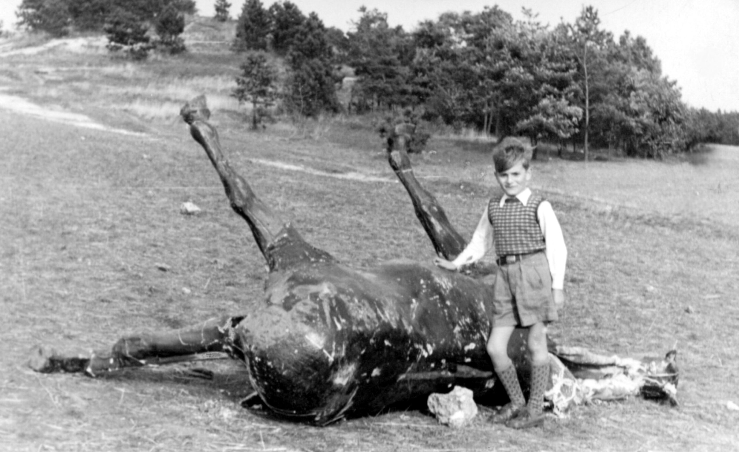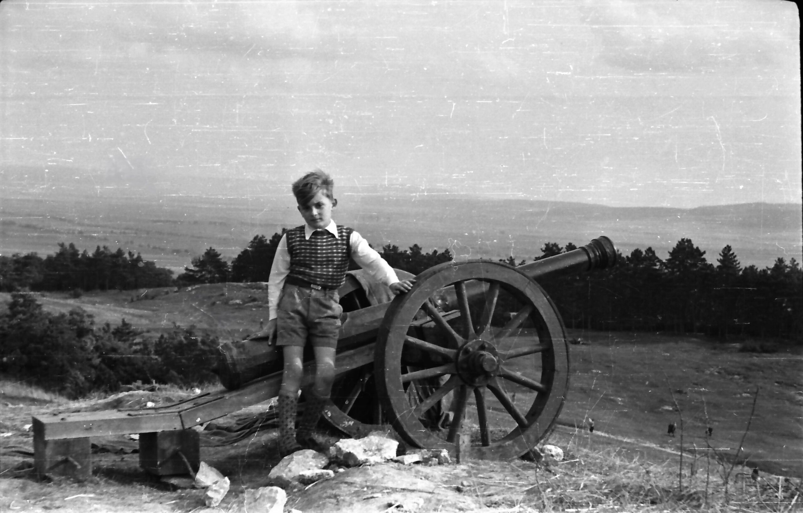 Auf einem Foto steht der achtjährige Peter vor einer für den Filmdreh nachgebauten Kanone. Weißes Hemd, karierter Pullunder – gestrickt von der Mutter. Wahrscheinlich ein Sonntag. „Da war es üblich, dass man sich fein anzog.“ Er beschreibt sich als unauffälliges Kind, eingebettet in eine starke Gemeinschaft: „Wir waren alle eine Truppe. Keiner war besonders.“ Das Bild selbst aber ist ein stiller Beleg dafür, wie besonders dieses Ereignis war. Denn man fotografierte damals nur, wenn es wirklich etwas zu sehen gab.