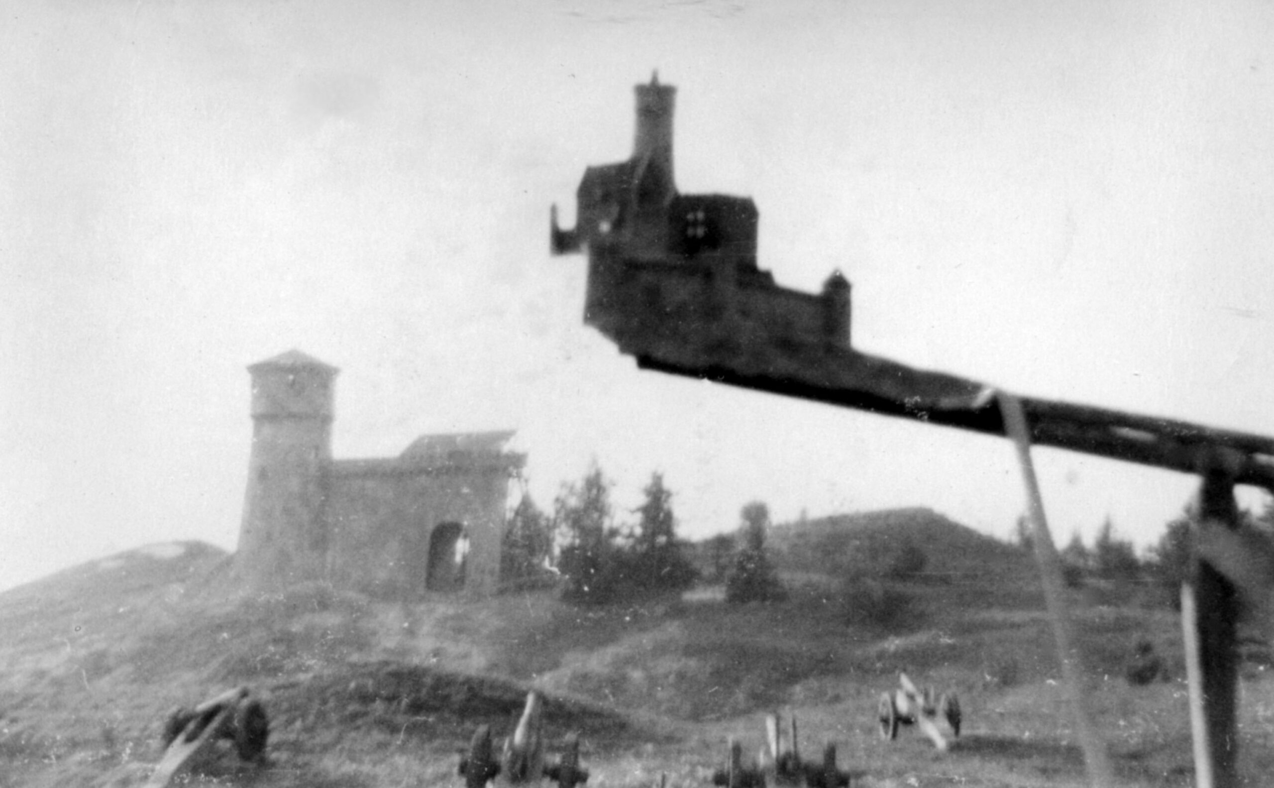 Eine Burg, die im Film hoch über dem Kyffhäuser thront, war in Wirklichkeit nur Kulisse – Holz, Stoff, Gips. Aus einem bestimmten Winkel genügte das. Und für die Totale griff das Filmteam in die Trickkiste der analogen Filmkunst: Ein maßstabsgetreues Miniaturmodell der Burg wurde vorn an einen Kragarm montiert, so gehalten, dass es sich aus der Kameraperspektive nahtlos mit dem realen Gelände im Hintergrund verband. Eine Montage, wie sie heute ein Computer erledigt, entstand hier rein mechanisch – live im Bild, ohne Nachbearbeitung. Peter Schreyer stieg damals selbst auf den Kameratisch und fotografierte das Modell – seine erste Lektion in der Kunst der Perspektive: „Dass Film nicht einfach abbildet, sondern Welt erschafft.“